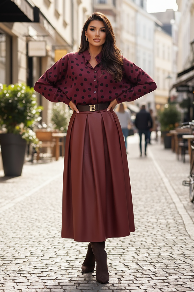 - Aby uzyskać stylowy look, wybierz tę stylową spódnicę z ekoskóry w jednolitym kolorze.
