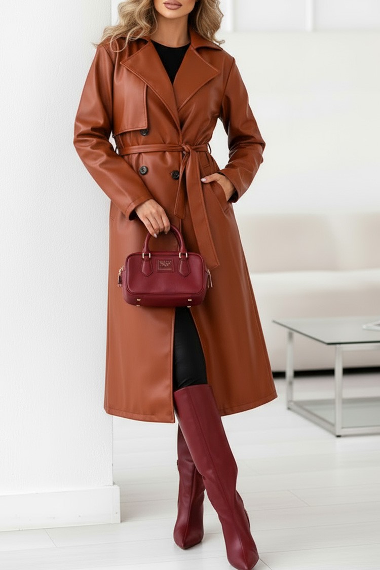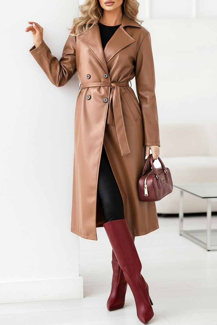 - Uzupełnij swoją modną stylizację dwurzędowym płaszczem przeciwdeszczowym w jednolitym kolorze, który sprawdzi się w różnych stylizacjach.