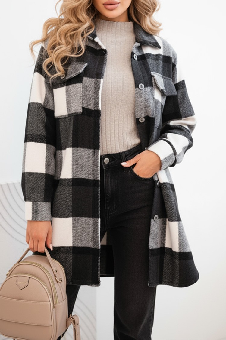 - Model ma wzór w kratkę i standardowe zapięcie na guziki.