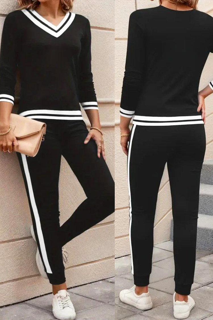 - Codzienny damski komplet dwuczęściowy, odpowiedni również do aktywności sportowych.