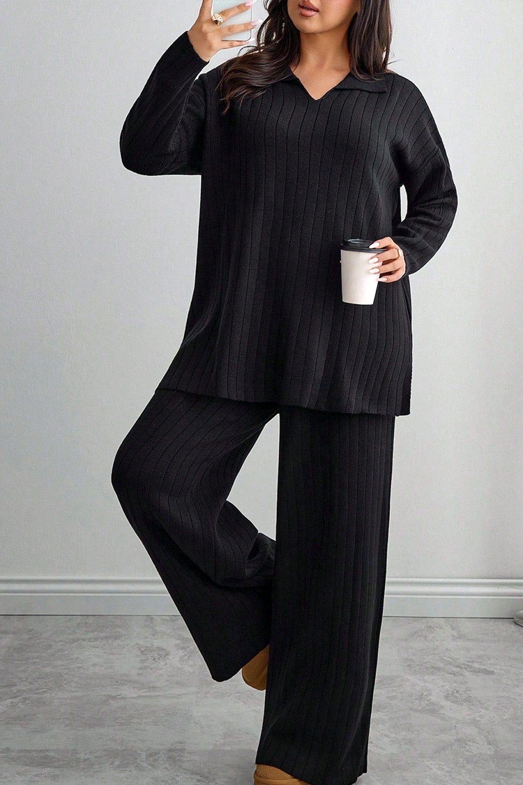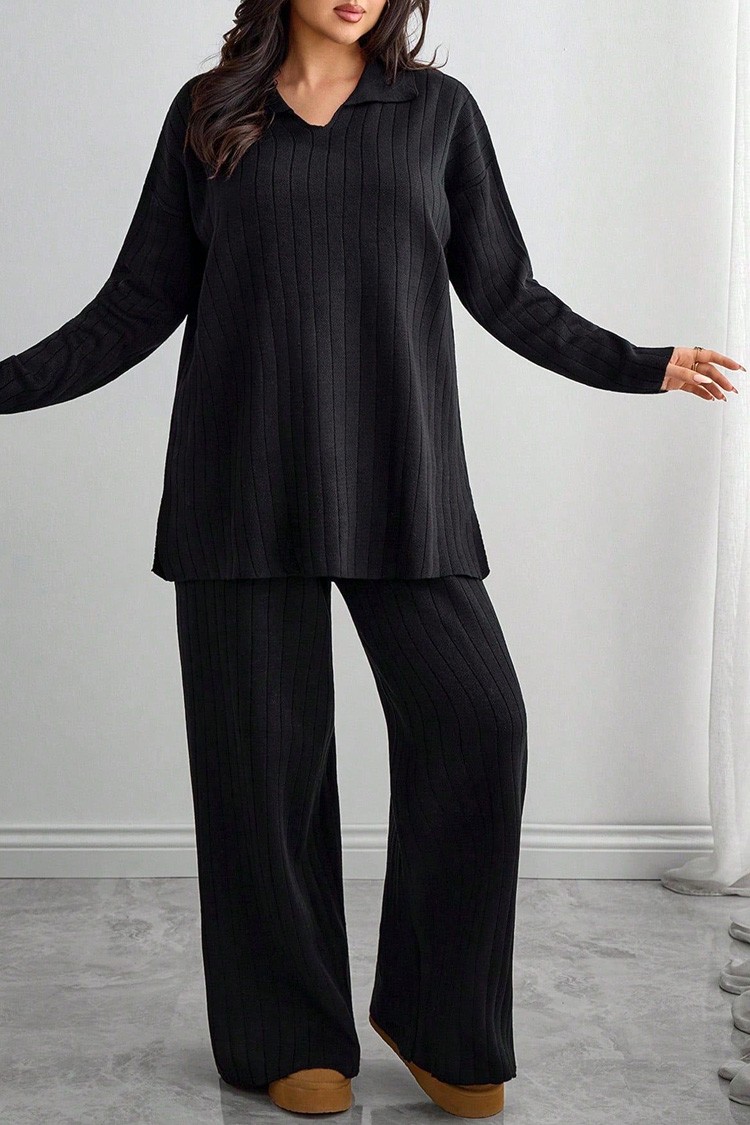 - Codzienny damski komplet dwuczęściowy w jednolitym kolorze.