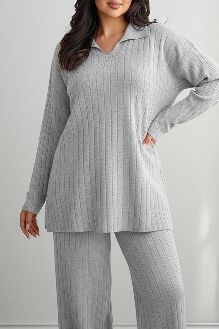 - Codzienny damski komplet dwuczęściowy w jednolitym kolorze.