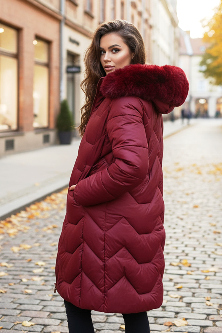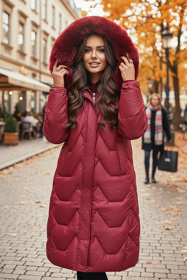 - Wybierz tę długą kurtkę o jednolitym wzorze, odpowiednią do różnych modnych stylizacji.