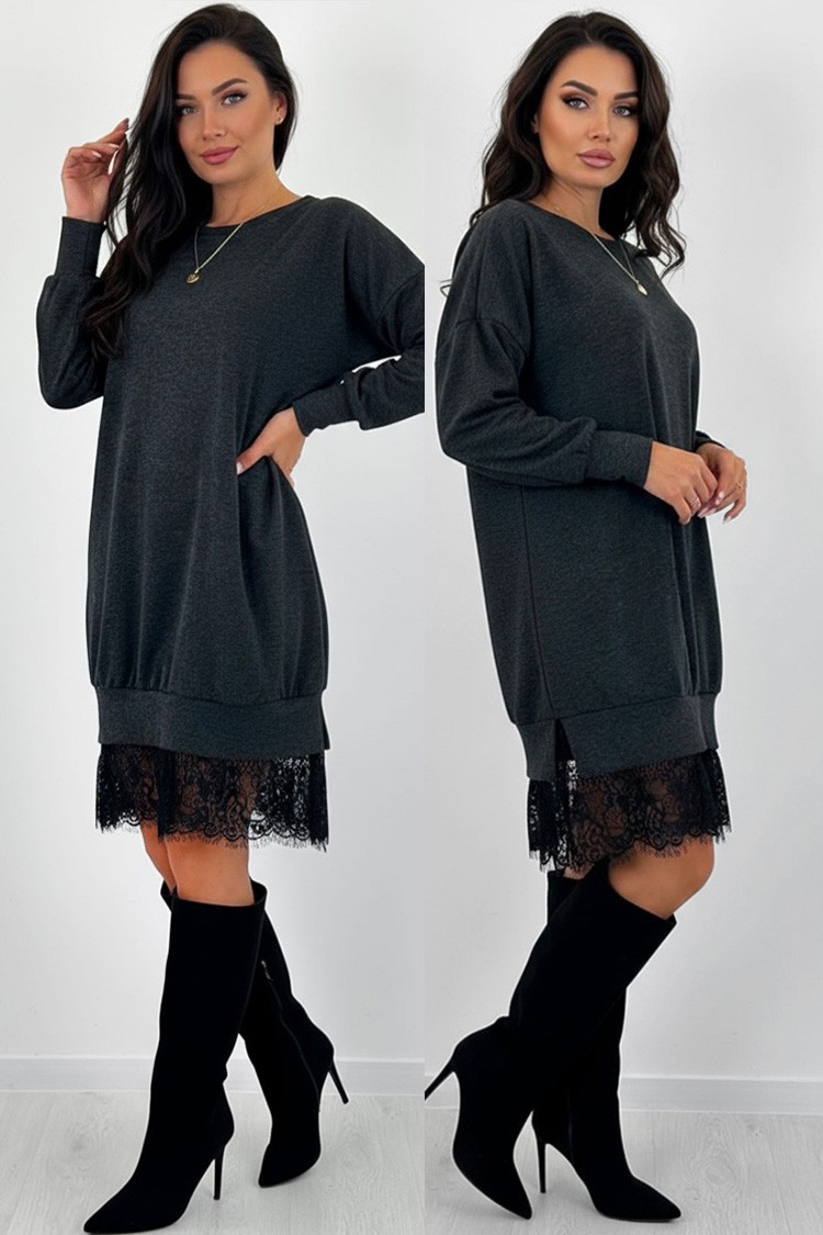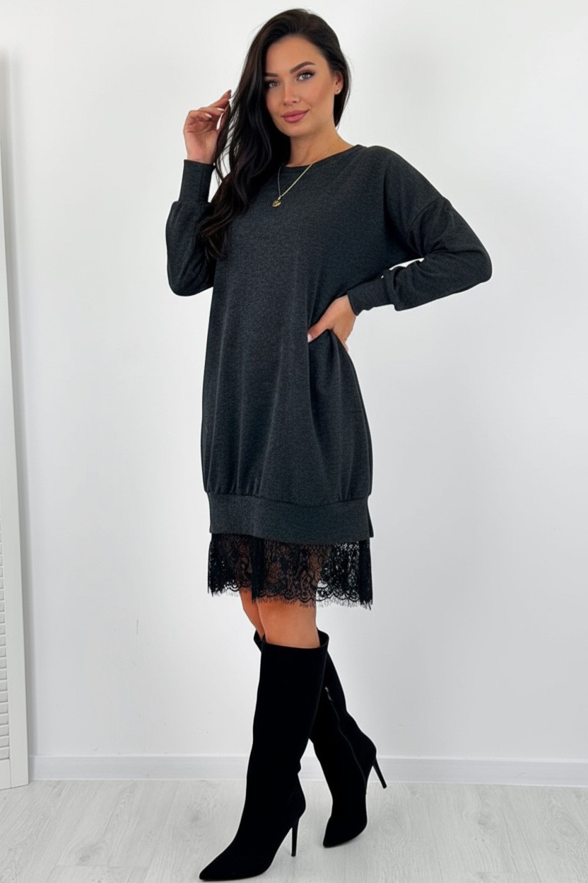 - Model o luźnym kroju, odpowiednim dla każdej sylwetki, z efektowną koronką na dole.