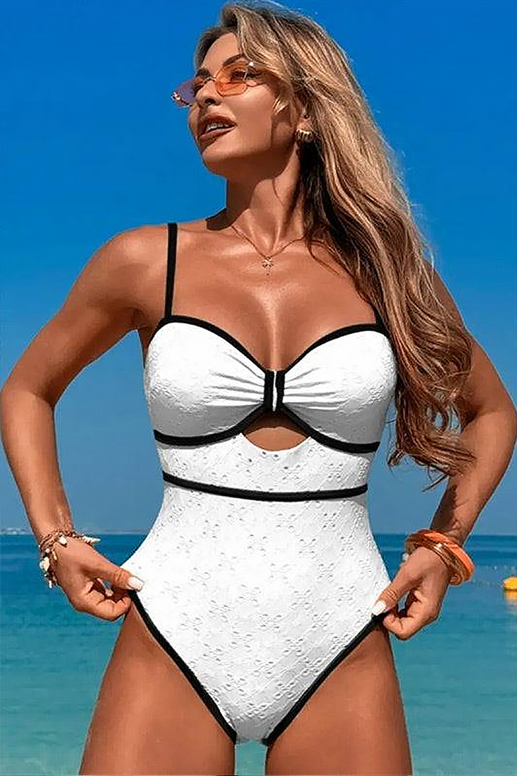 - Jednoczęściowy strój kąpielowy w dwukolorowy wzór, odpowiedni na wakacje nad morzem i do spa.