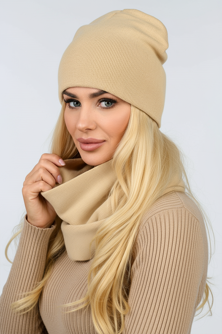 - Uzupełnij swoją stylizację o dwuczęściowy komplet – czapka i szalik w jednolitym kolorze.