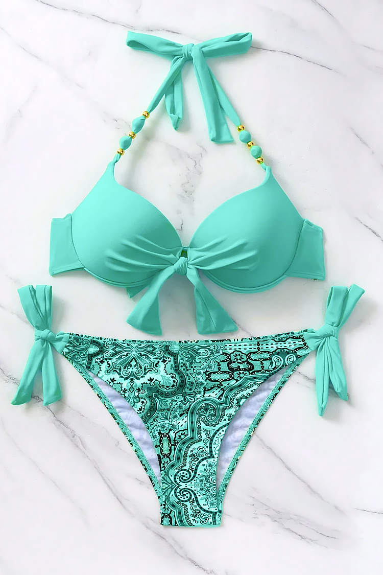 - Góra posiada wyjmowane wkładki i wygodne ramiączka wiązane z tyłu.