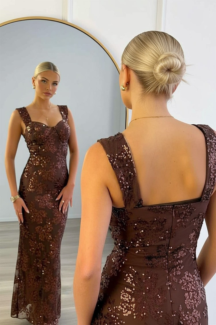 - Model ma grube ramiączka, dopasowany krój i wykonany jest z cienkiego materiału z błyszczącymi cekinami.