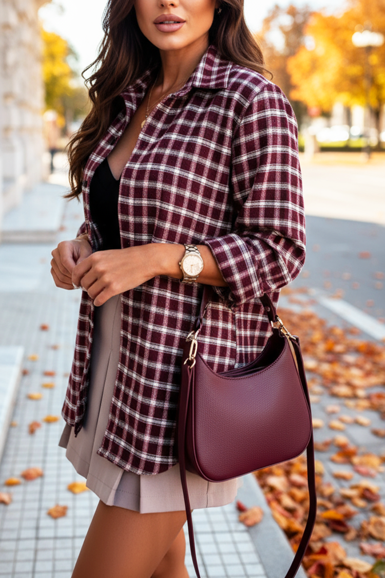 - Model ma wzór w kratkę i standardowe zapięcie na guziki.