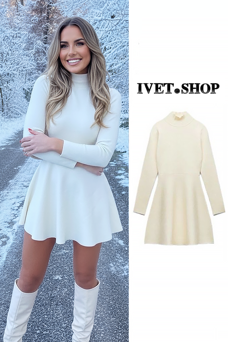 - Sukienkę polecamy połączyć z butami na obcasie i małą torebką.
