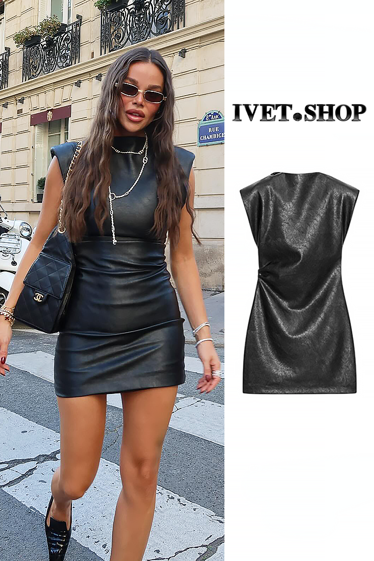 - Model ma seksowny, dopasowany do ciała krój i stylowy, klasyczny fason z ekoskóry.