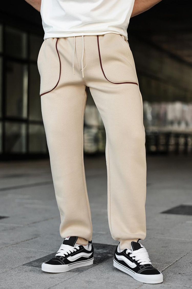 - Model posiada kieszenie po obu stronach, ściągacz w pasie, którynie uciska oraz proste nogawki zwężające się ku końcowi.