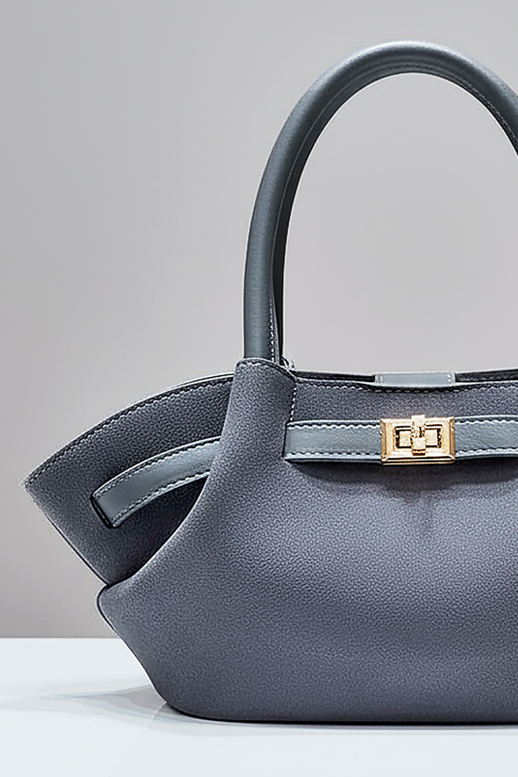 - Model posiada krótkie uchwyty z eko-skóry i efektowny pasek z klamrą.