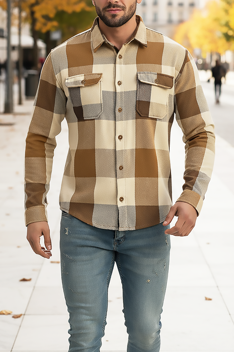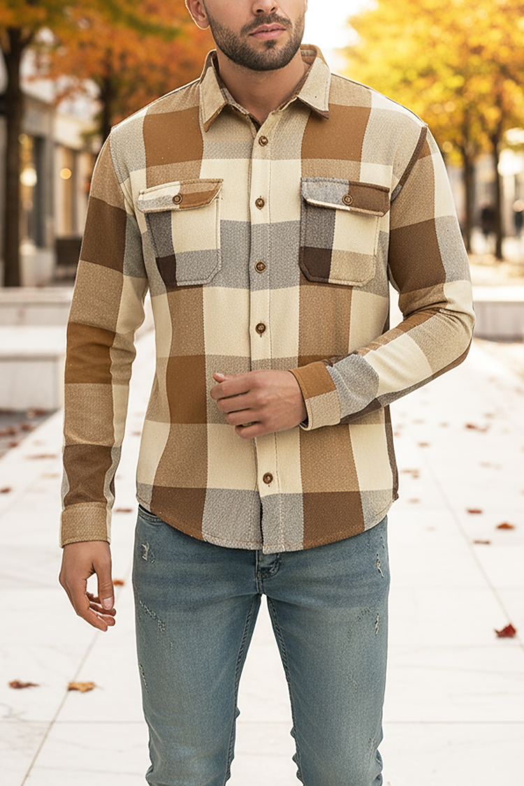 - Stylowa męska koszula w kratkę, pasująca do różnych stylizacji.
