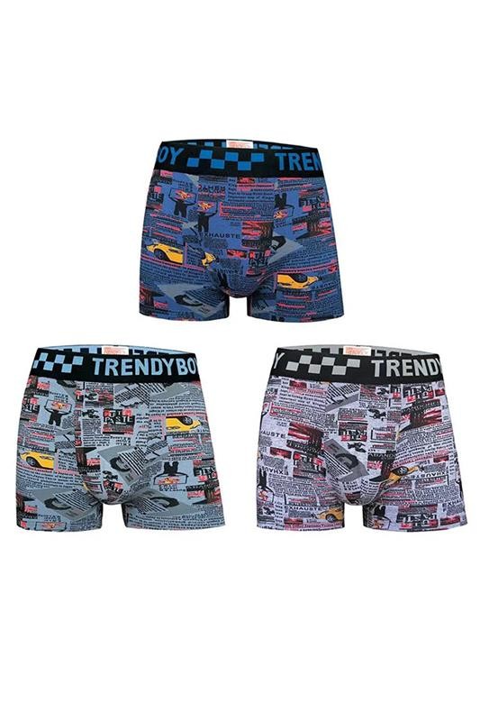 - Zestaw trzech sztuk męskich bokserek z nadrukiem, wykonanych z bawełny, oddychającego materiału.