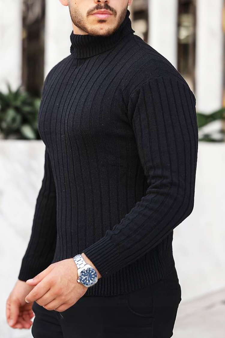 - Wygodny męski golf i pionowym prążkowanym wzorem w kolorze czarnym, pasujący do różnych stylizacji.