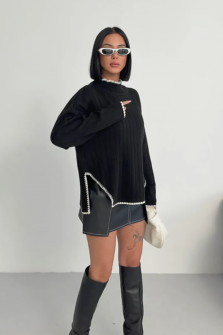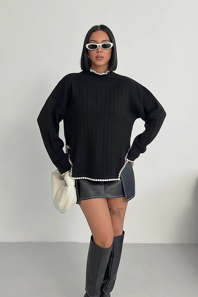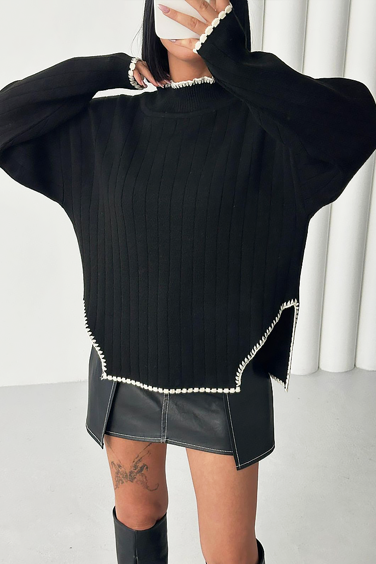 - Praktyczny sweter o modnym wzorze i jednolitym kolorze.