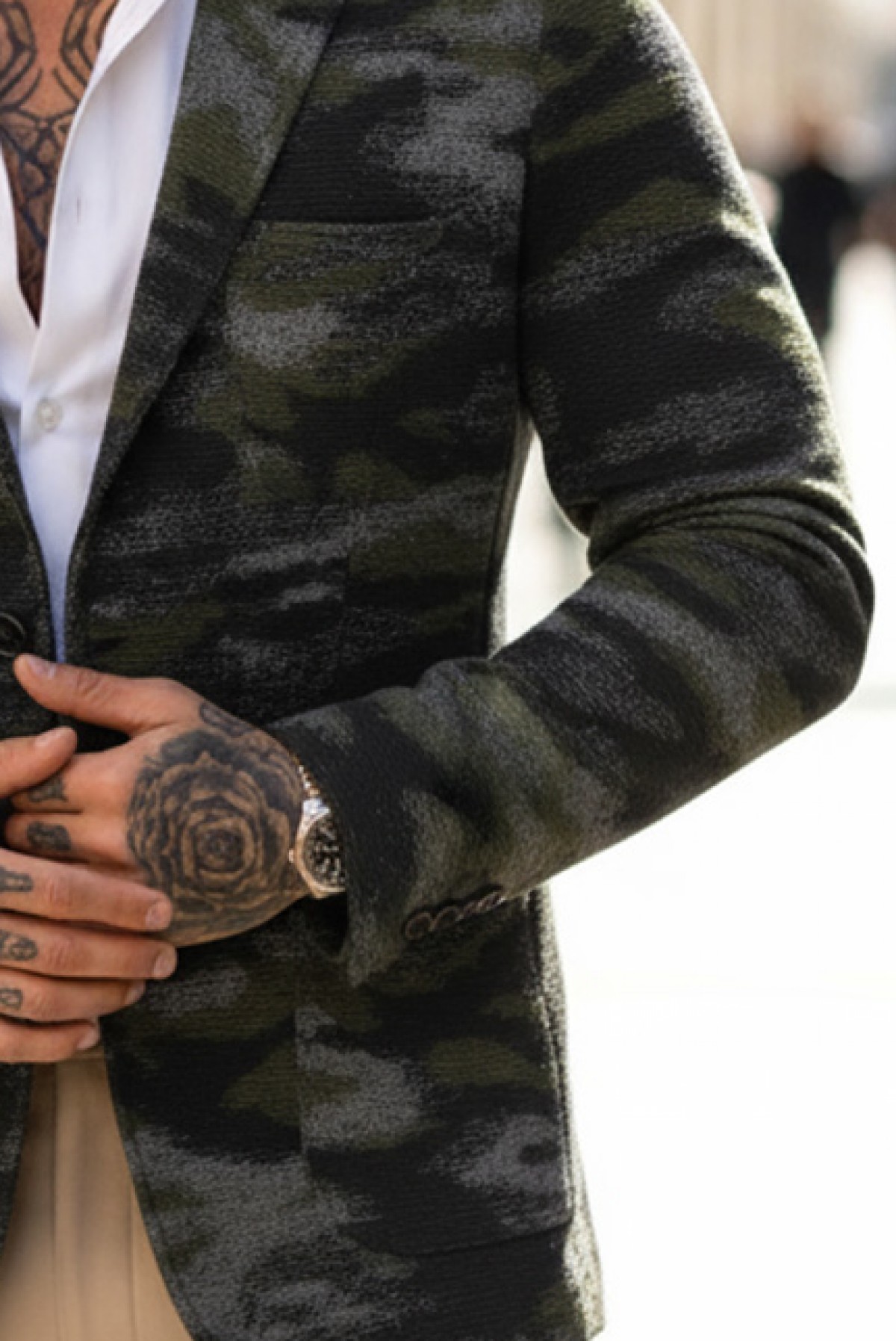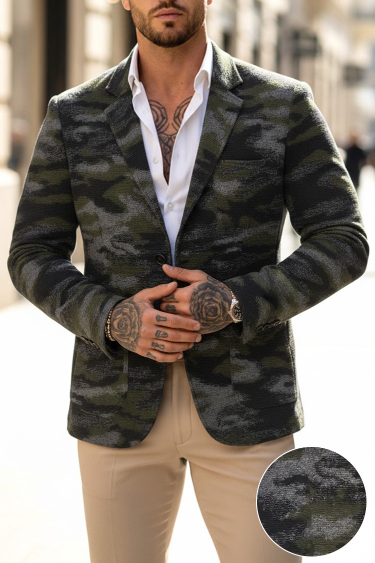 - Stylowa męska marynarka w modnym kamuflażu, odpowiednia zarówno do codziennych, jak i eleganckich stylizacji.