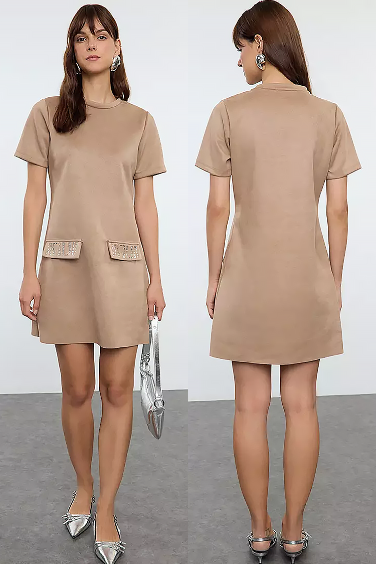 - Model ma klasyczny krój, krótkie rękawy i efektowne, ozdobne kieszenie.