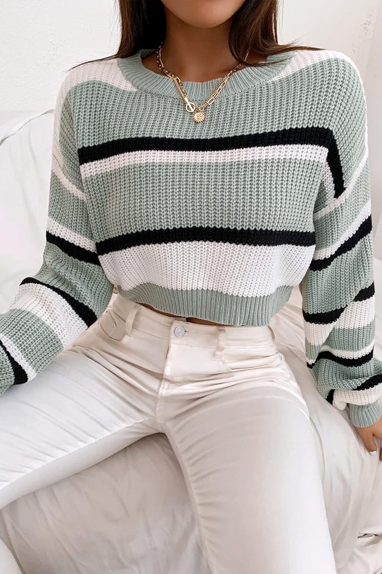 - Praktyczny sweter z wielokolorowym wzorem, idealny na co dzień.
