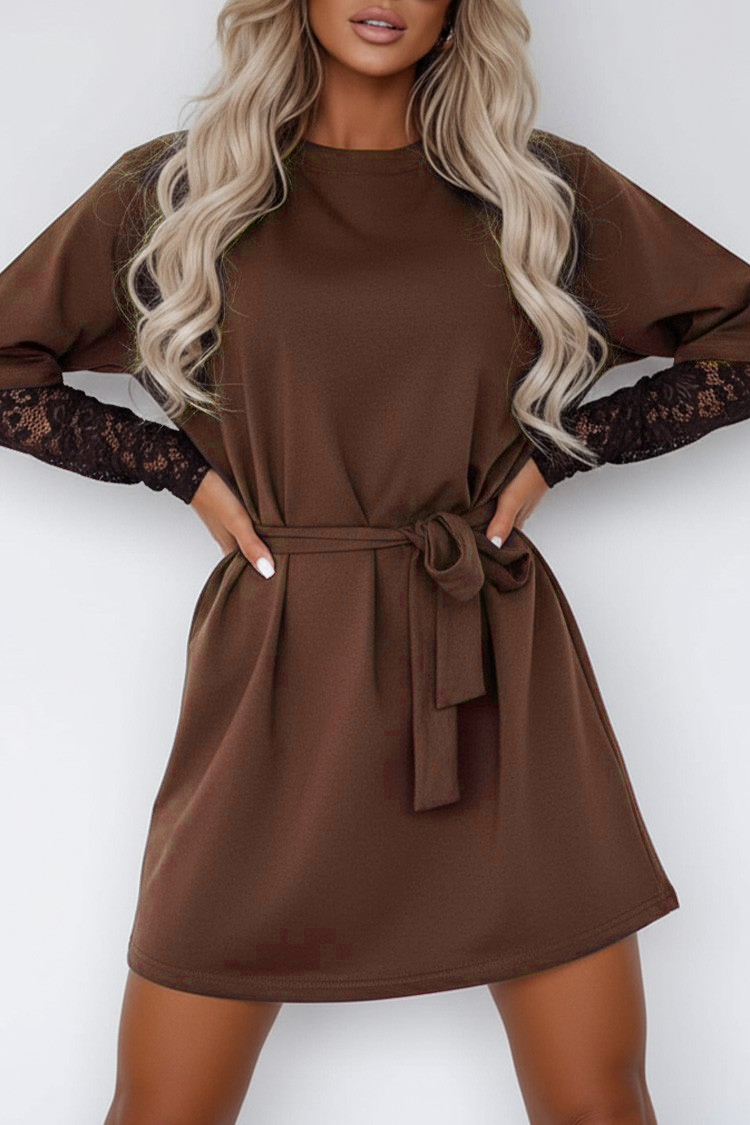 - Model ma długie, efektowne rękawy i pasek z materiału w tym samym kolorze.