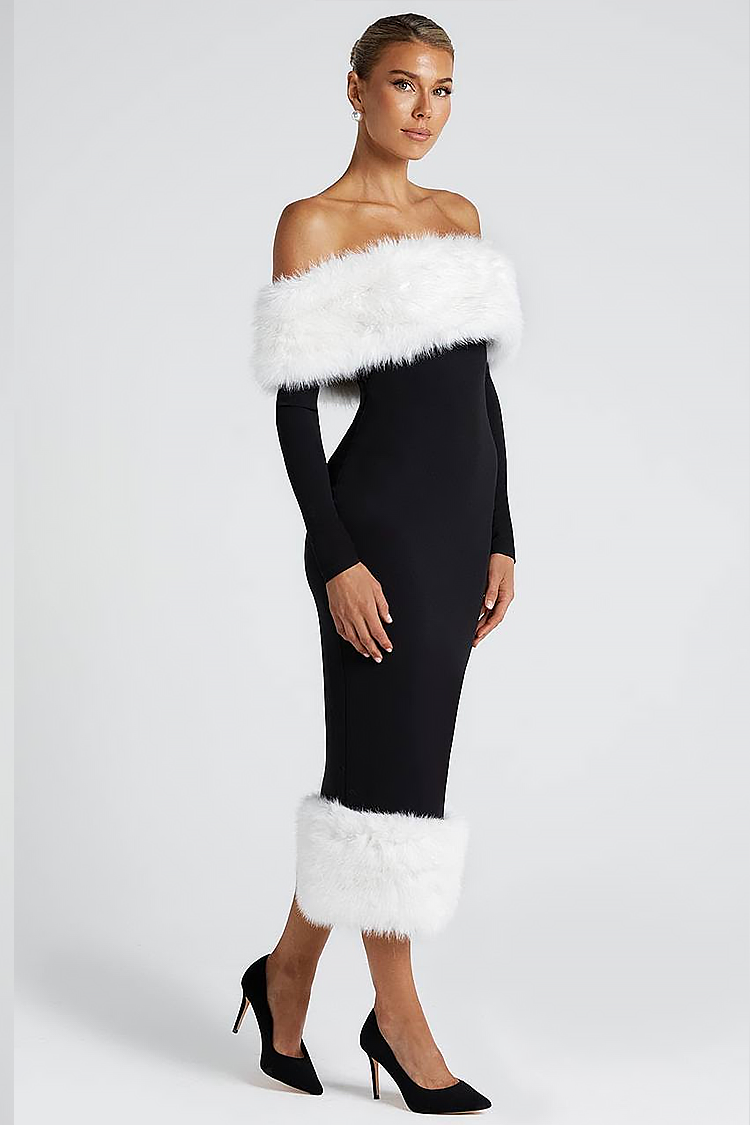 - Aby uzyskać elegancką stylizację, wybierz tę sukienkę midi o niesamowitym kroju.
