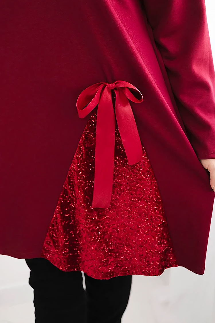 - Modelka ma luźny, elastyczny krój i cekinowy akcent u dołu.