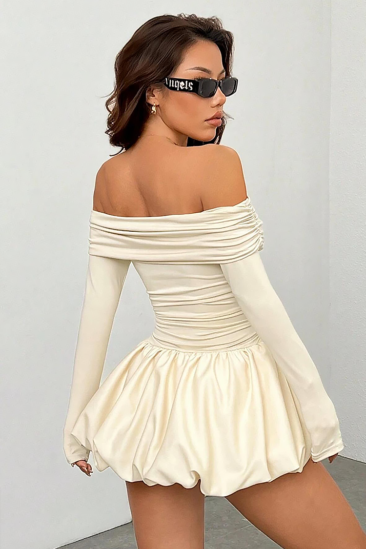 - Model jest dopasowany do ciała i można go nosić z odkrytymi ramionami.
