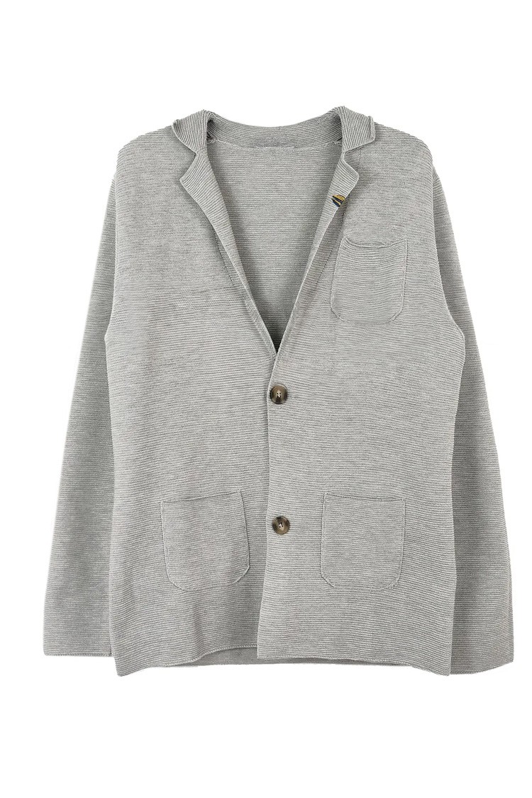 - Model ma luźny krój i prosty design. Kaardigan ma kołnierz, kieszenie i zapinany jest na guziki.
