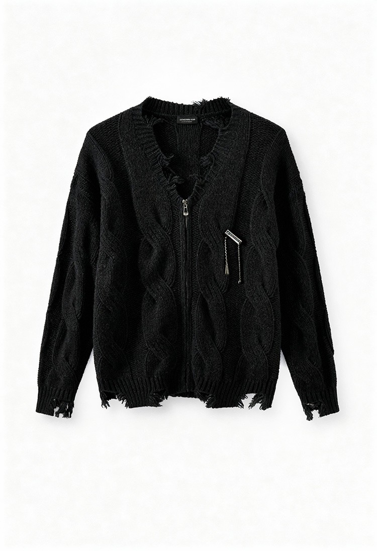 - Model ma luźny krój, pasujący do każdej sylwetki. Kardigan zapinany jest na zamek błyskawiczny.