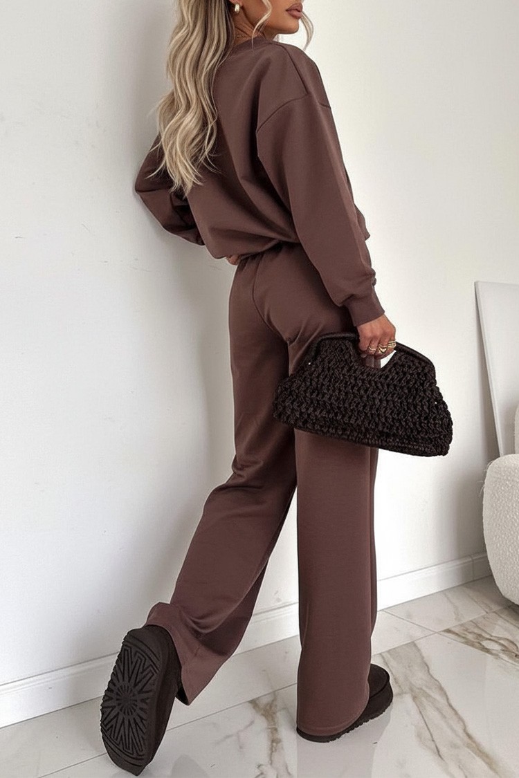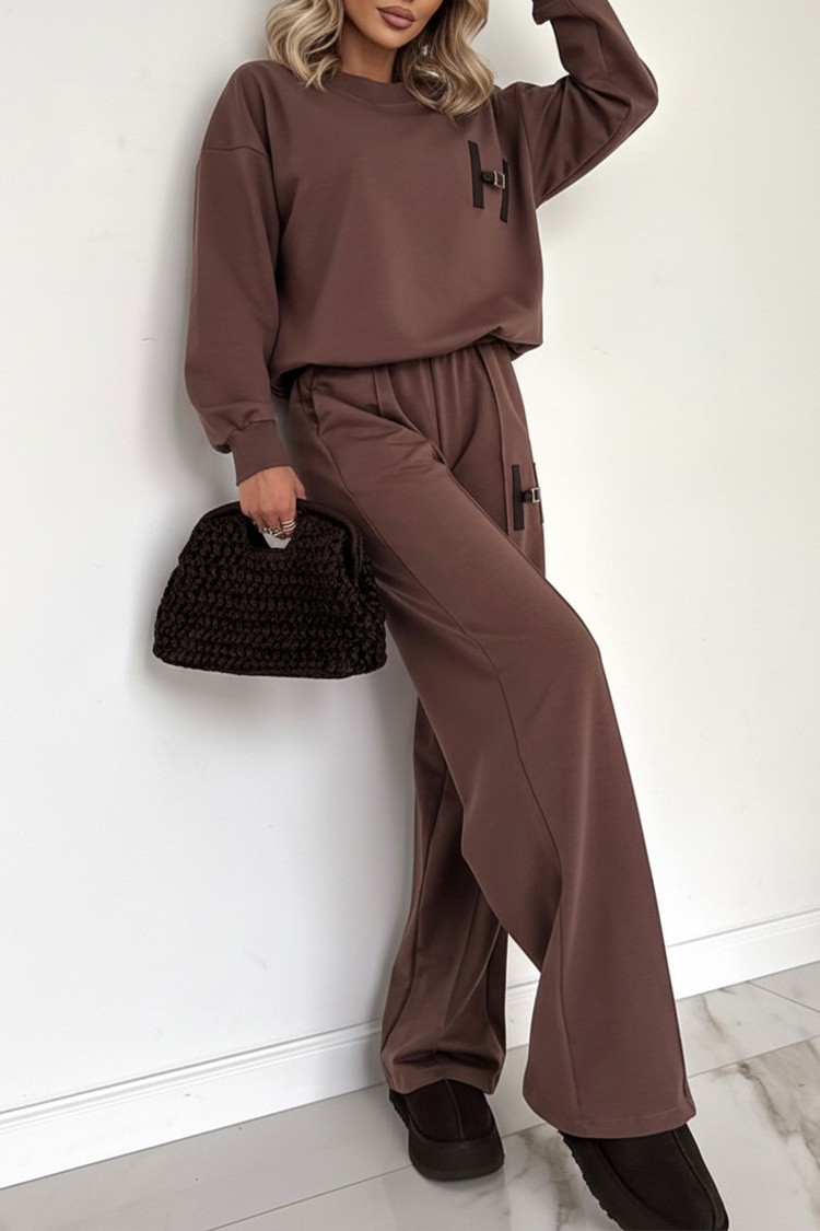 - Dwuczęściowy komplet damski na co dzień z jednolitym wzorem, idealny na co dzień.