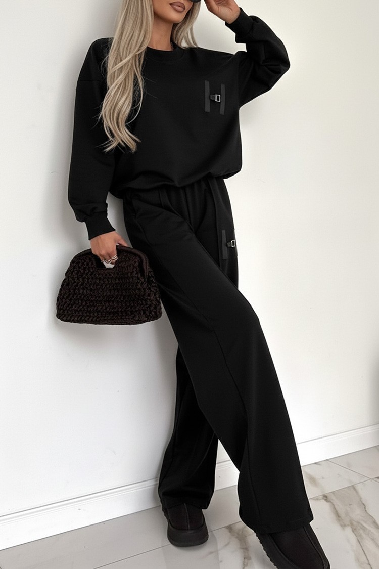 - Dwuczęściowy komplet damski na co dzień z jednolitym wzorem, idealny na co dzień.