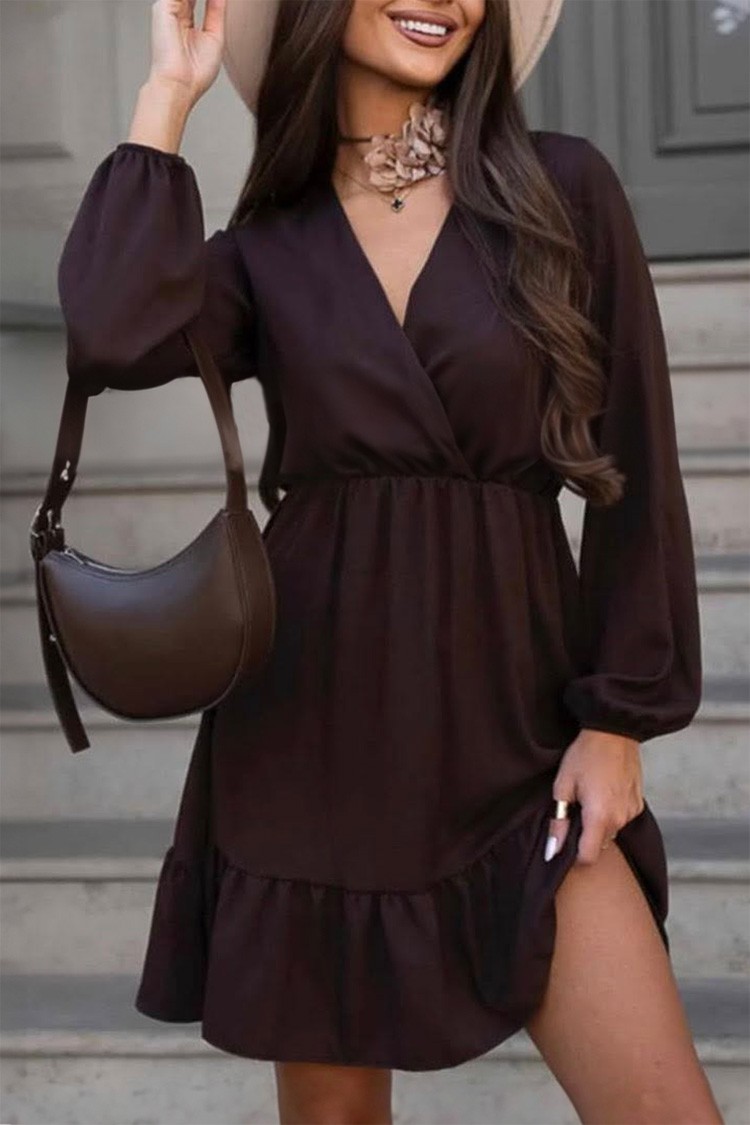 - Aby uzyskać stylowy wygląd, wybierz tę krótką sukienkę w jednolity wzór.
