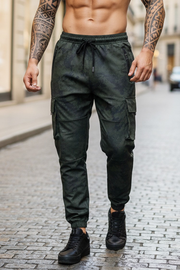 - Męskie spodnie bojówki w kolorze khaki i kamuflażu, idealne na co dzień.