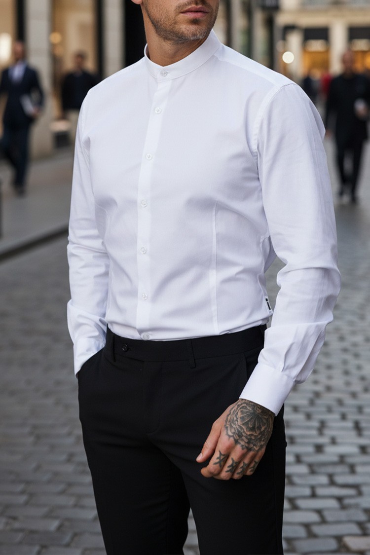 - Elegancka męska koszula w klasycznym białym kolorze, odpowiednia na codzienne i formalne okazje.