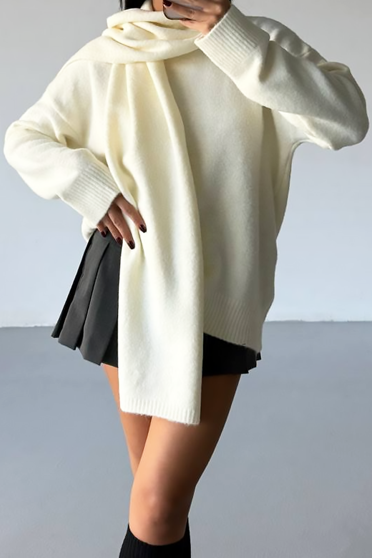 - Praktyczny sweter z jednolitym wzorem, idealny na co dzień.