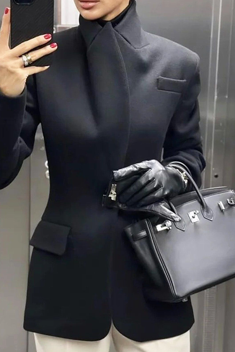 - Model ma elegancki, dopasowany krój, uzupełniony ozdobnymi kieszeniami i zapięciem na ukryty guzik.