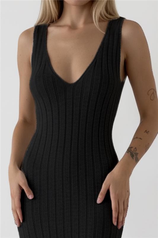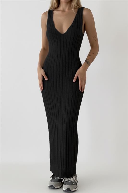 - Sweter ma klasyczny krój, a sukienka jest długa i dopasowana.