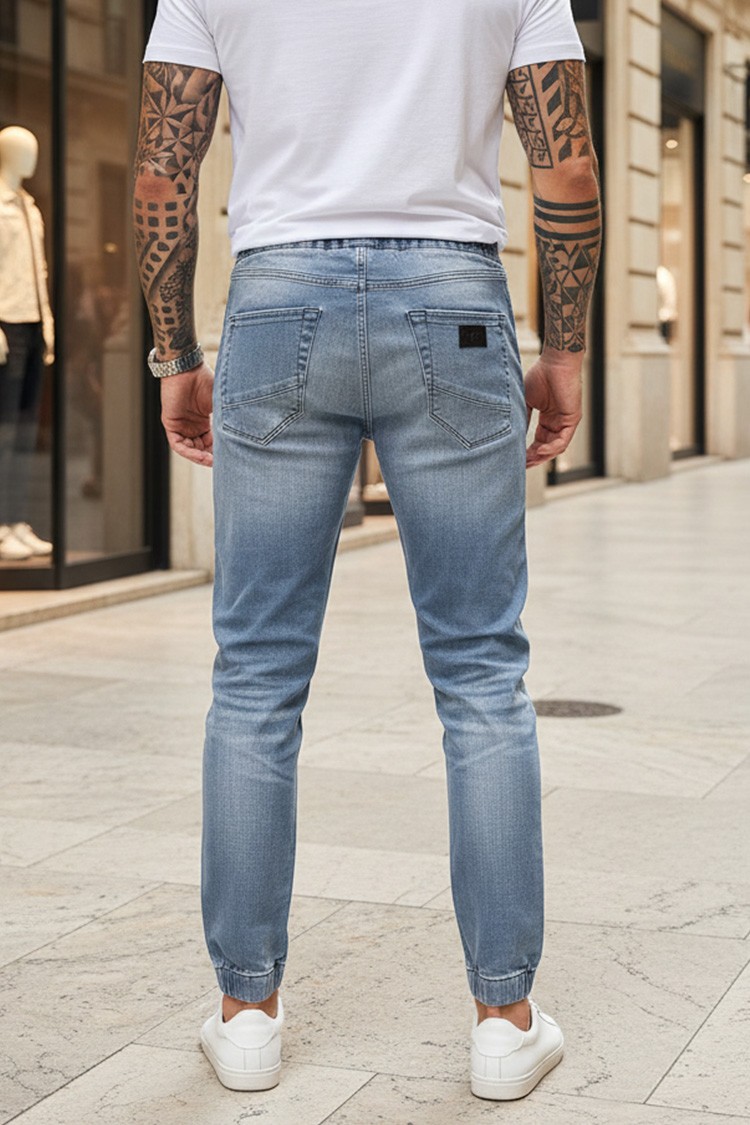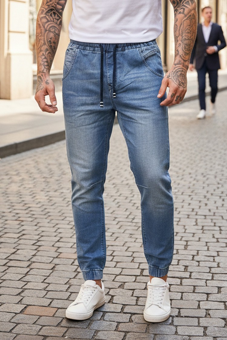 - Wykonane z bawełnianego denimu dla większego komfortu. Model posiada elastyczną talię ze sznurkiem.