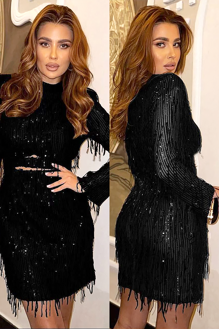 - Elegancki dwuczęściowy komplet damski z atrakcyjnymi frędzlami.