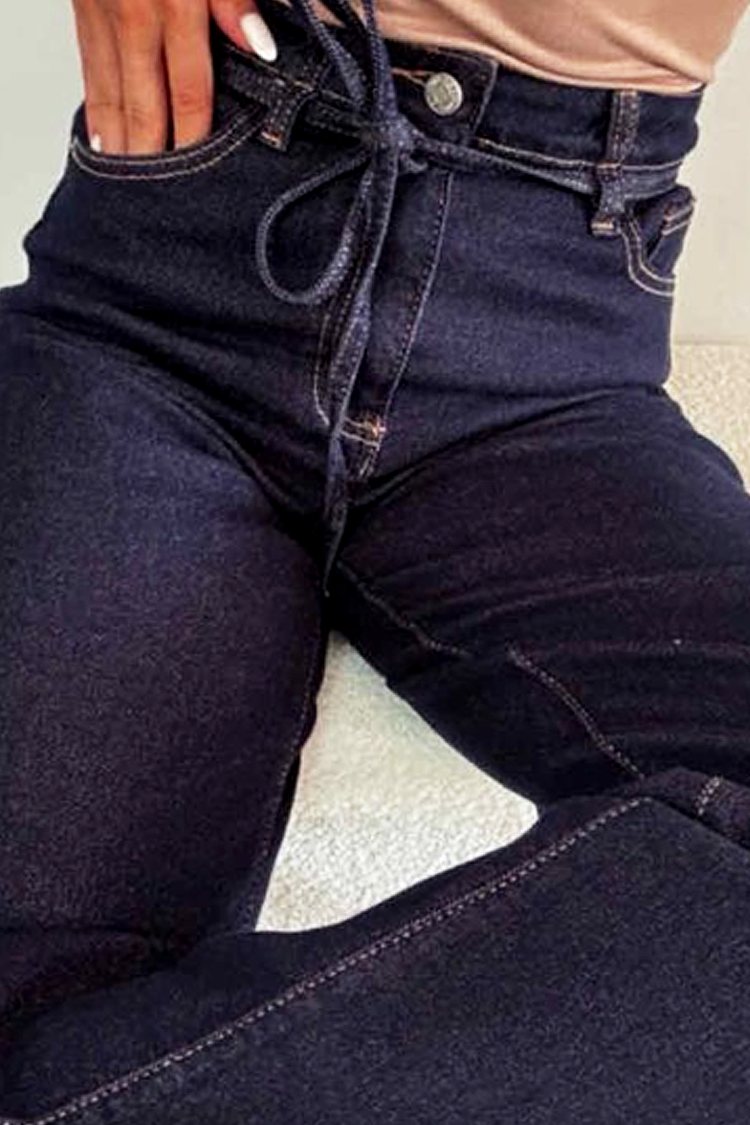 - Model ma wysoki stan, wygodny krój, kieszenie i jeansowy pasek.