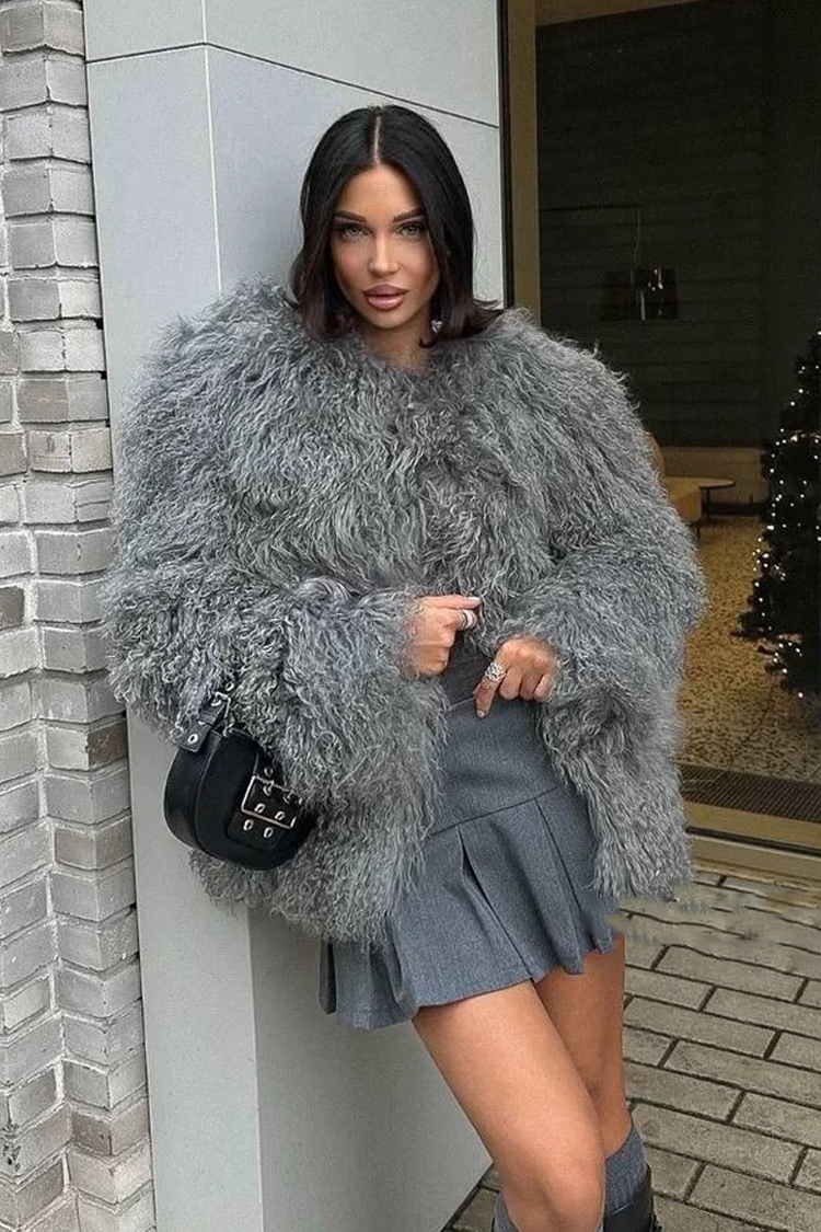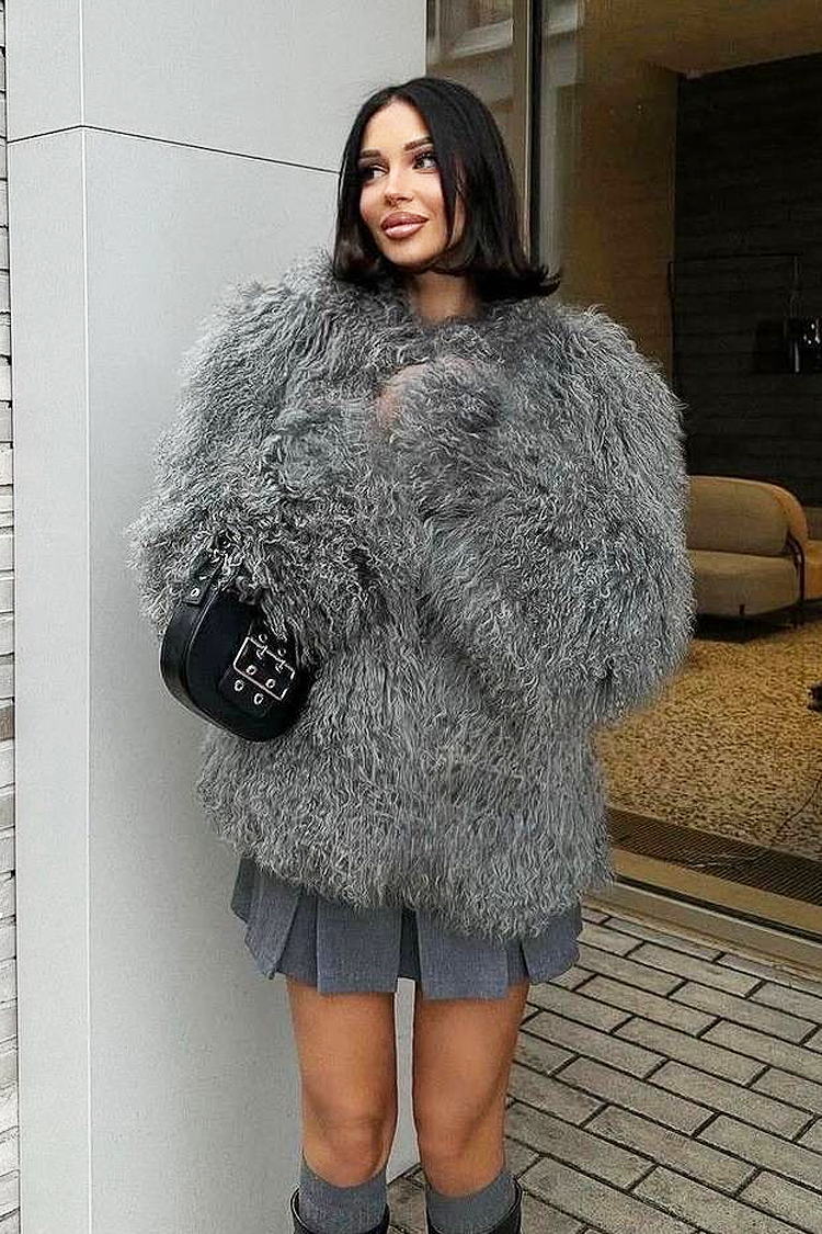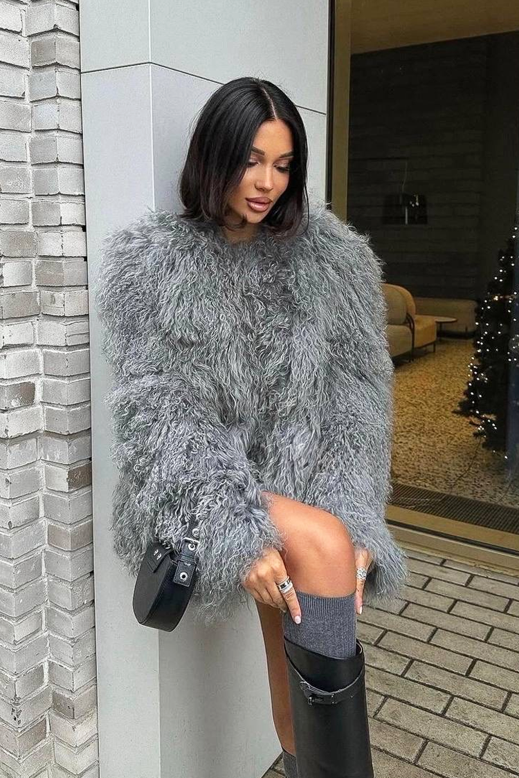 - Wybierz ten puszysty płaszcz o atrakcyjnym wzorze, pasujący do różnych modowych stylizacji.