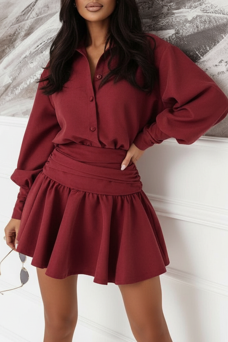 - Model ma wygodny krój, marszczenie w talii i guziki z przodu.