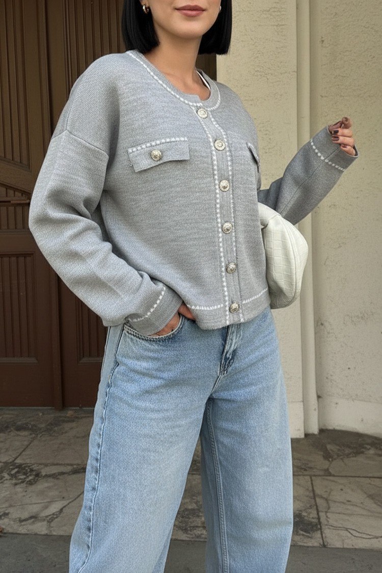 - Spektakularny damski kardigan o klasycznym kroju i wygodnym fasonie, idealny na co dzień.