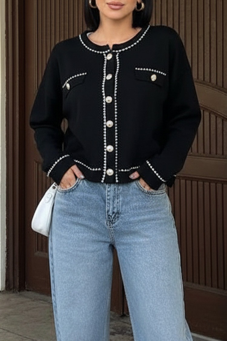 - Spektakularny damski kardigan o klasycznym kroju i wygodnym fasonie, idealny na co dzień.