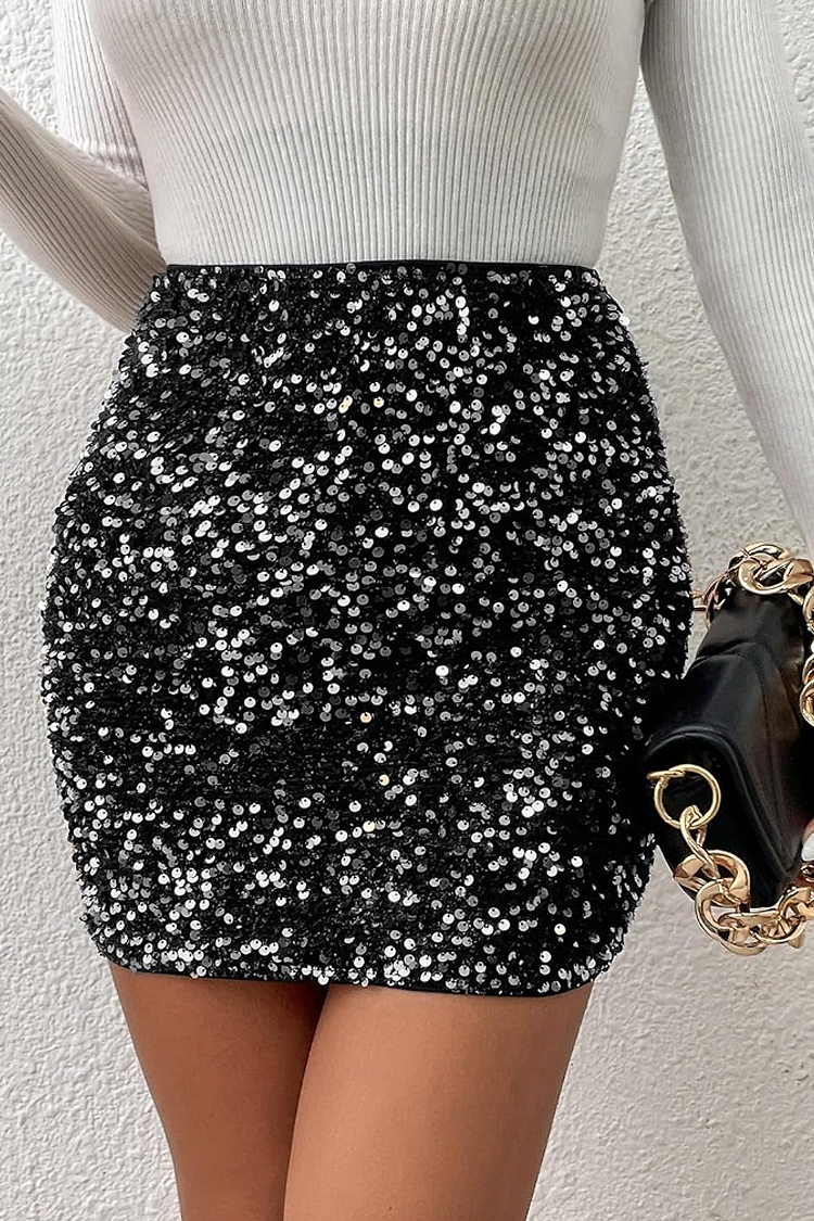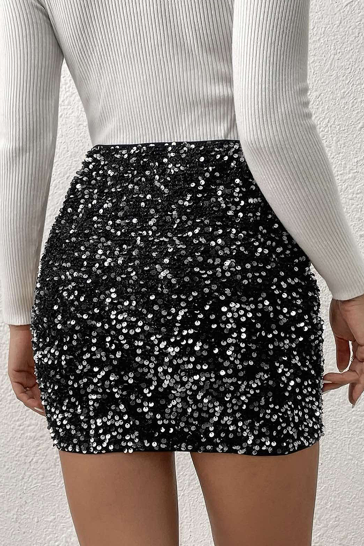 - Model ma seksowny i dopasowany, krótki krój i cekiny na całej długości.