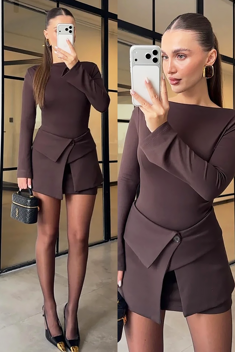 - Polecamy łączyć go z butami na wysokim obcasie oraz małą kopertówką.