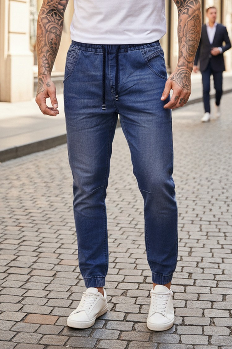 - Uszyte z bawełnianego denimu dla większego komfortu. Model posiada gumkę w pasie z wiązaniem.