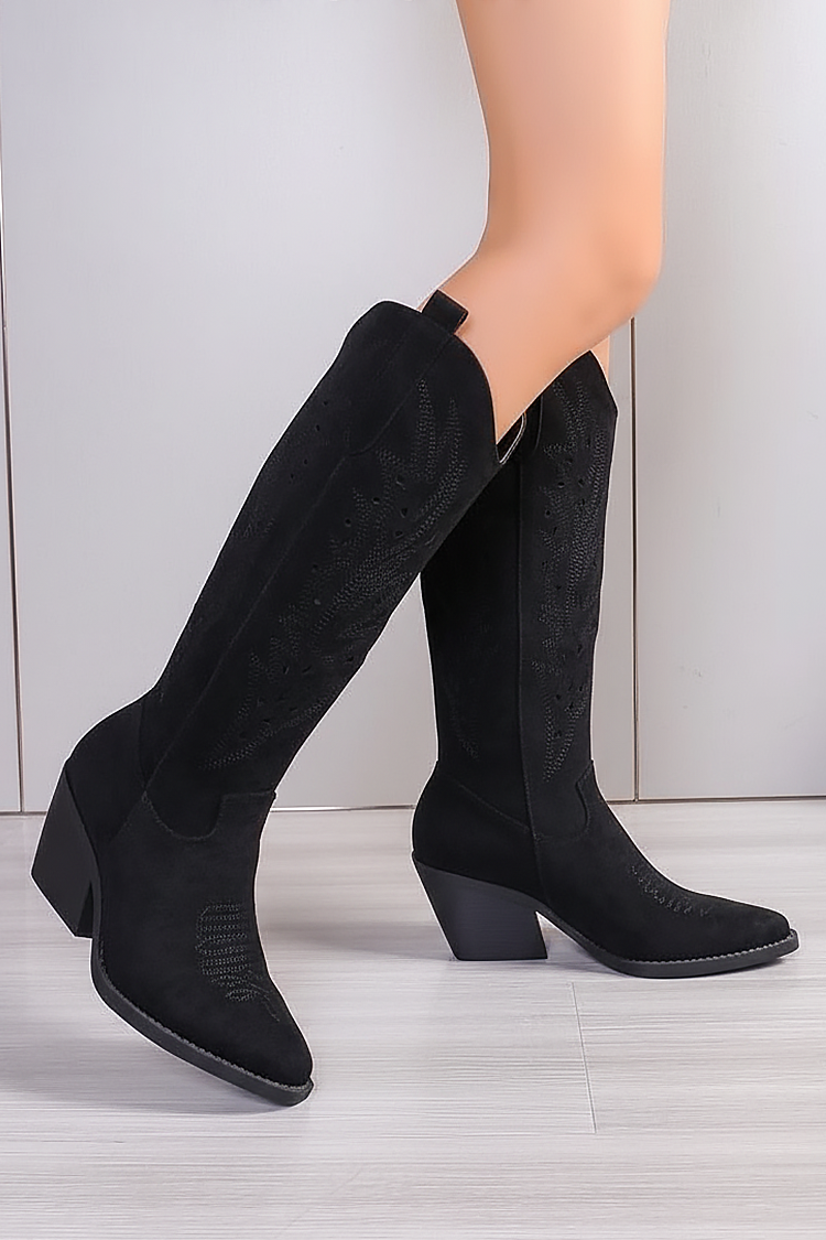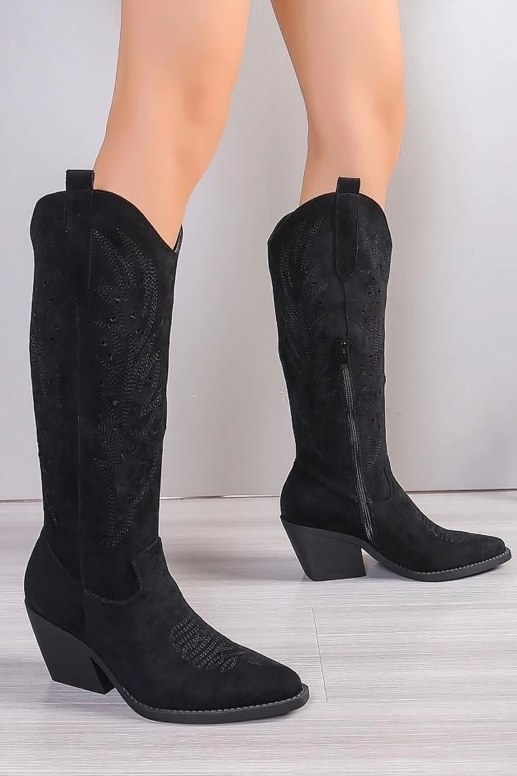 - Najnowszy trend w modzie obuwniczej – stylowe kozaki na wygodnym, niskim obcasie w klasycznym kolorze o ciekawym wzornictwie.