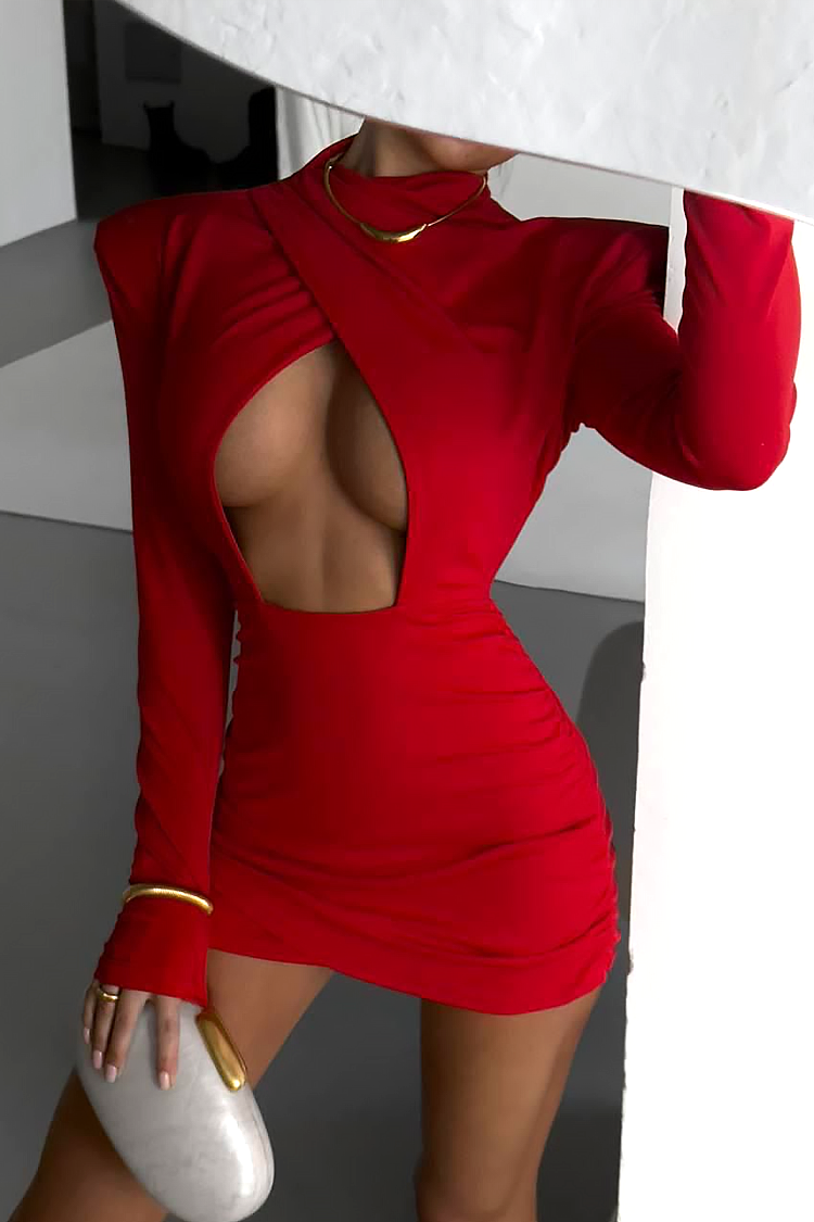 - Model ma seksowny krój, długie rękawy, atrakcyjny wycięcie w dekolcie i poduszki na ramionach.
